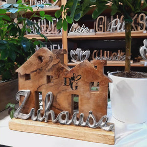Anbieter:BollwegHäuser Deko Holz mit silbernem Schriftzug Zuhause 24cm