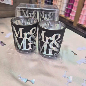 Windlicht Hochzeit | 2 Stück Kerzengläser Mr & Mrs schwarz 6cm
