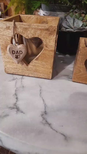 Windlicht aus Holz quadratisch mit Herzausschnitt 12cm 55548 groß