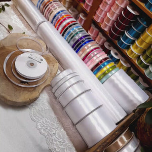 Satinband 12 mm x 25 m silber/weiß mit Punkten