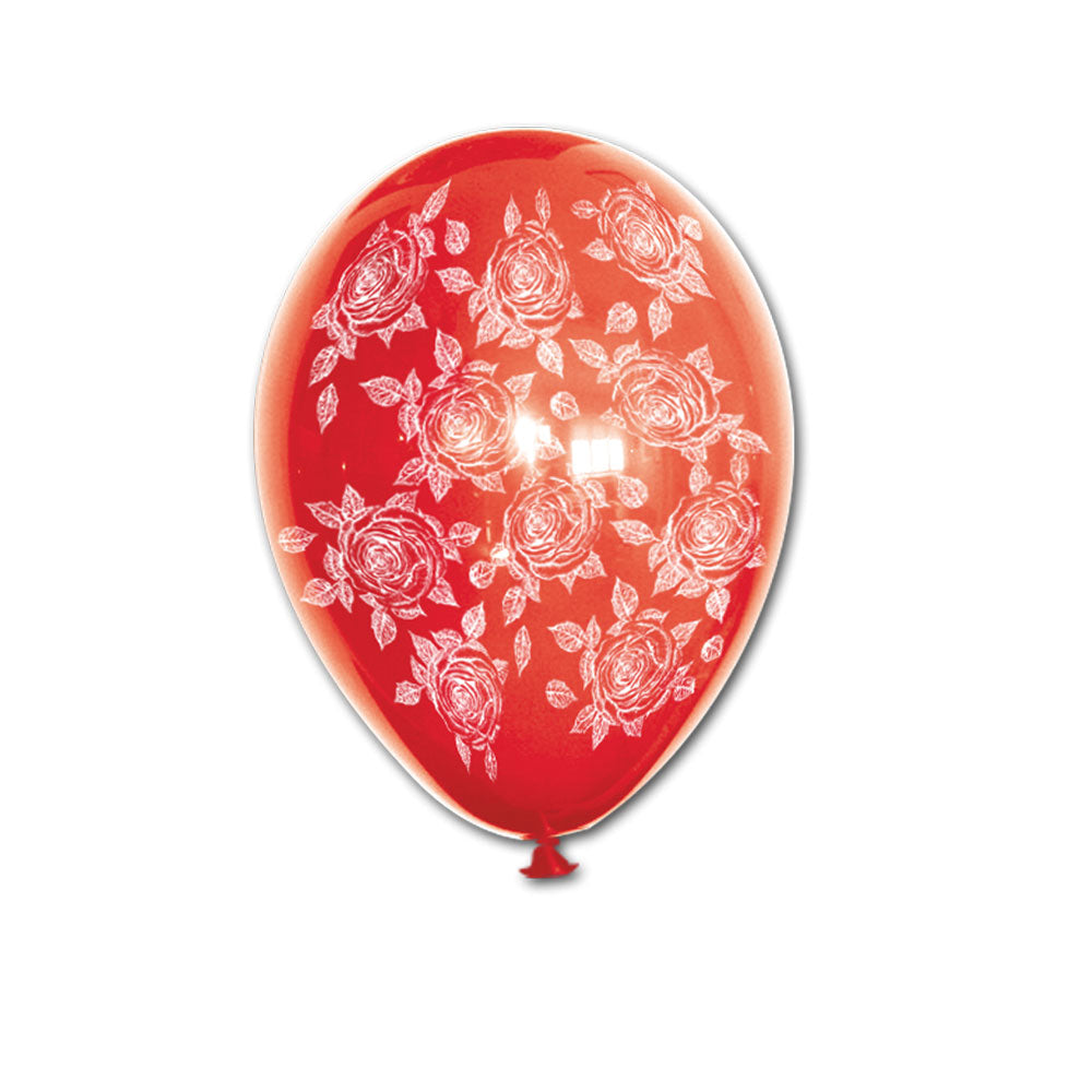 150 bedruckte Luftallons rot mit weißen Rosen