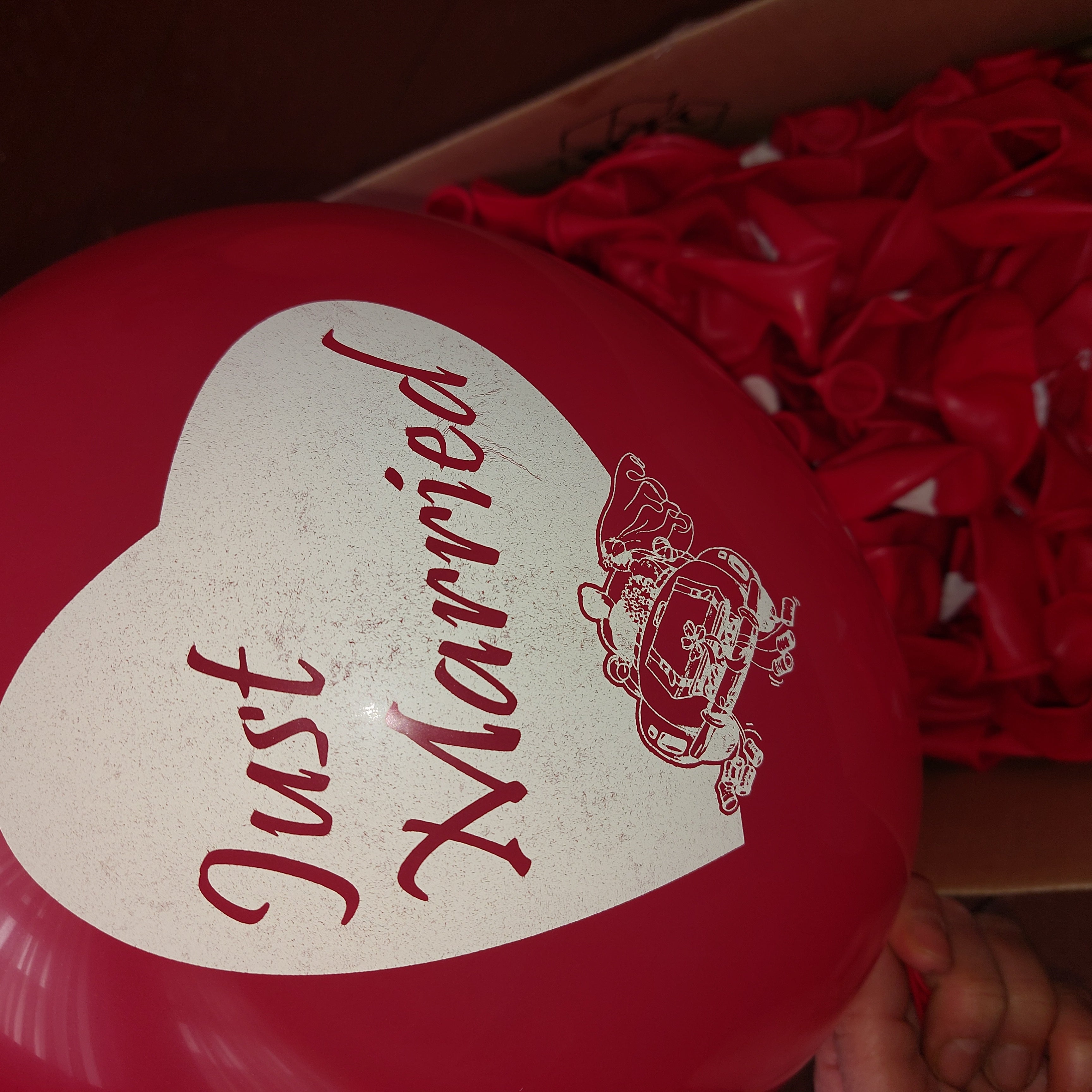 Ein romantisches Highlight für jeden Hochzeitstag! Diese roten Ballons mit weißem Herz-Aufdruck „Just Married“ sorgen für eine festliche Atmosphäre und sind ideal für den Empfang, den Festsaal oder als Überraschung für das Brautpaar. Perfekt geeignet zum Befüllen mit Luft oder Helium – für eine traumhafte Hochzeitsdekoration mit liebevollem Detail.