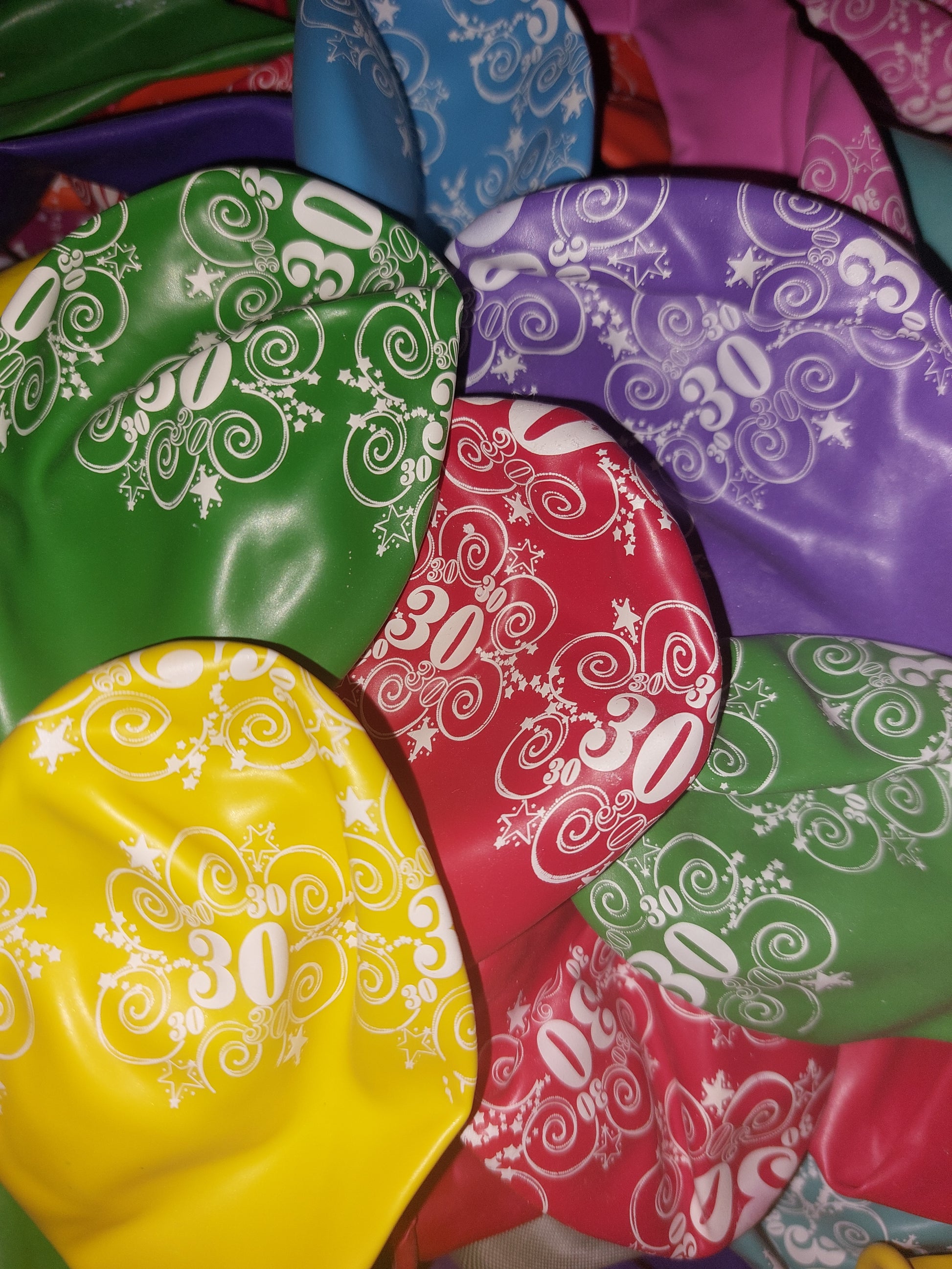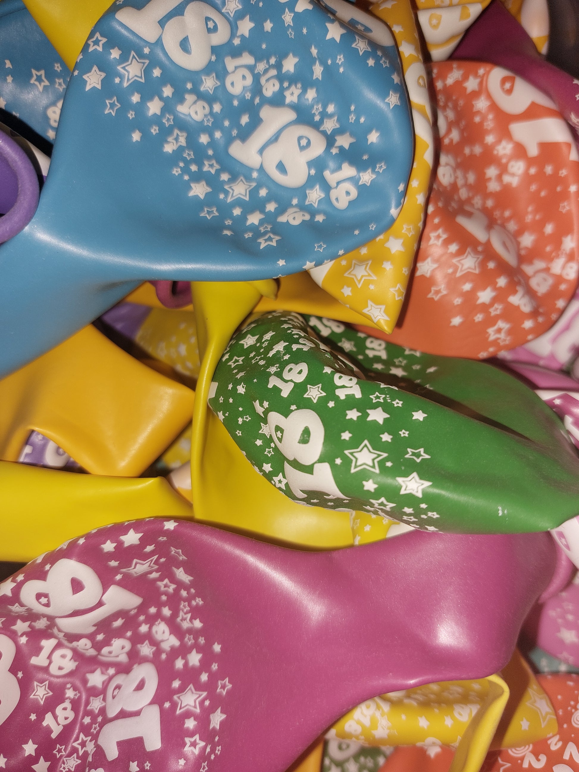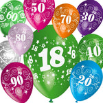 Diese farbenfrohen Luftballons mit Zahlmotiv sind die perfekte Dekoration für Geburtstage, Jubiläen oder Firmenfeiern. Dank der bunten Mischung sorgen sie für fröhliche Stimmung und eignen sich ideal für Erwachsene – ob Männer oder Frauen. Die weißen Druckmotive heben sich schön von den kräftigen Farben ab und machen jeden Raum zu einem festlichen Highlight.