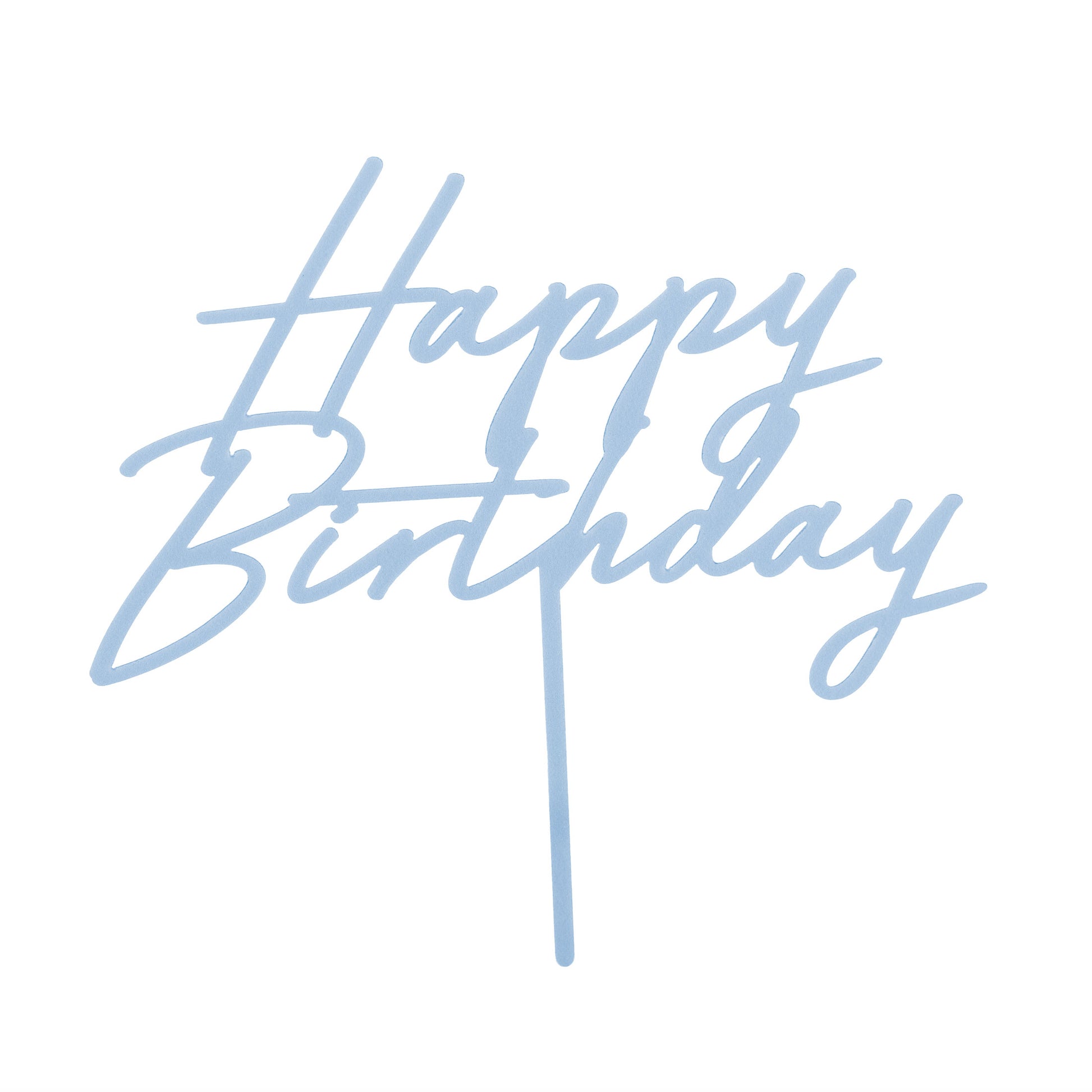 Acryl Kuchentopper Happy Birthday nebelblau 18cm