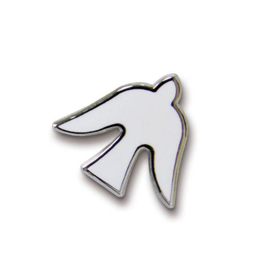 Der Friedenstaube Anstecker ist besonders hochwertig gefertigt und zeigt in silberner Umrandung eine reinweiße Emaillierung.