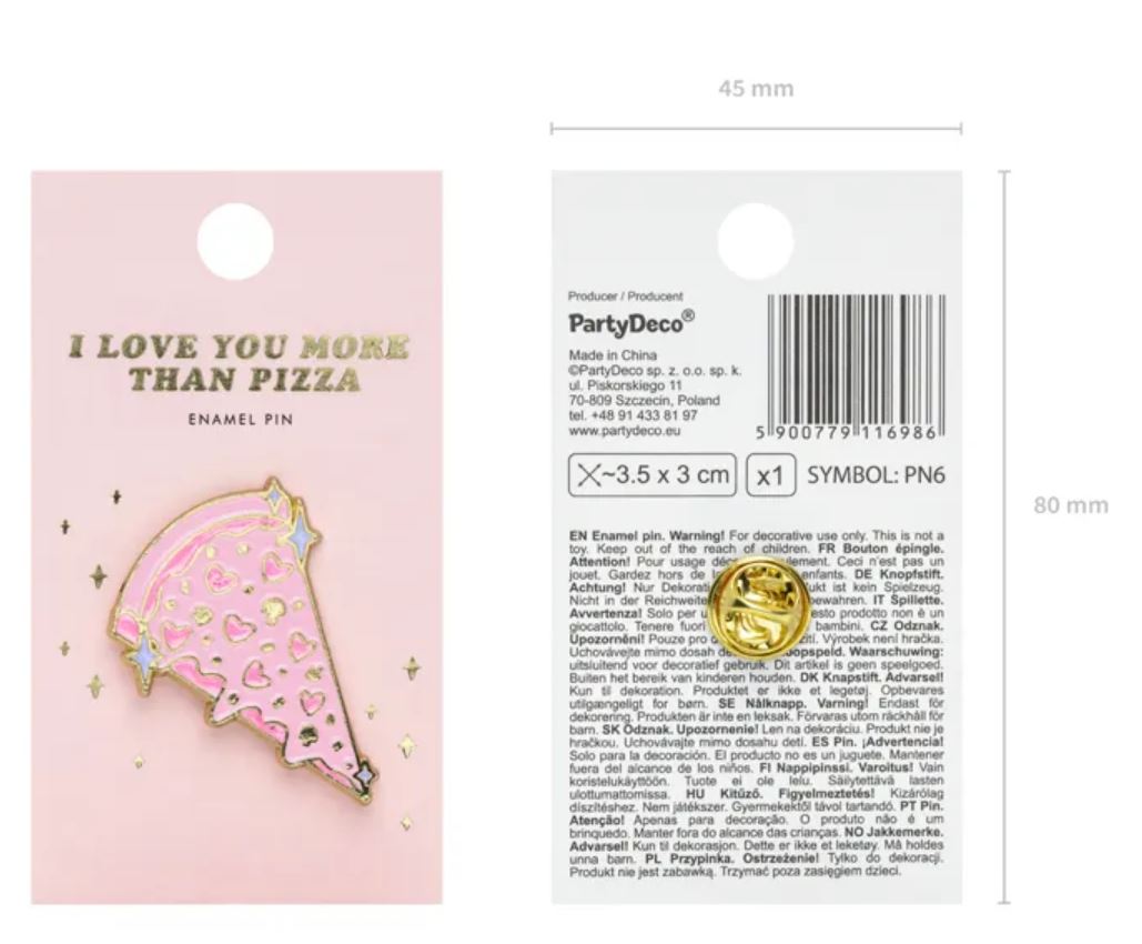 Eine ideale Mischung aus lustig, niedlich und stylish, so passt der Pin zu jedem Outfit: ob am Kragen, am T-Shirt oder an der Mütze befestigt, zeigen Sie der Welt Ihre Freude an Pizza.