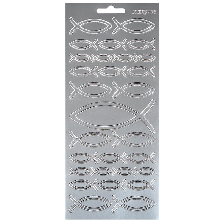 Aufkleber Fische silber | 29 angestanzte Konturen Fische auf Bogen