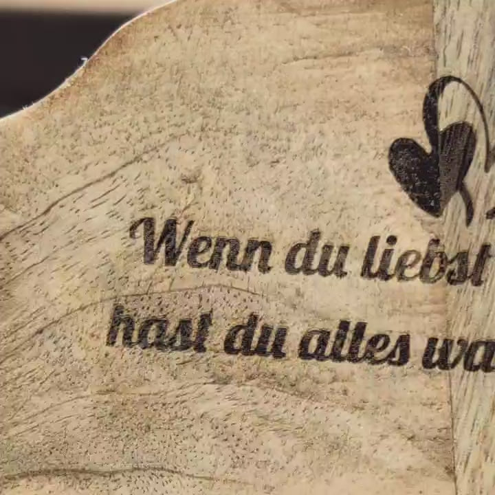 Ganz nach deinen Wünschen gravieren wir diesen Deko-Artikel mit lieben Worten, Namen, Daten oder einem schönen Spruch. Und natürlich lässt sich die Deko-Skulptur so nicht nur als Hochzeitsgeschenk überreichen, sondern auch als Geschenk zu vielen verschiedenen Anlässen.
