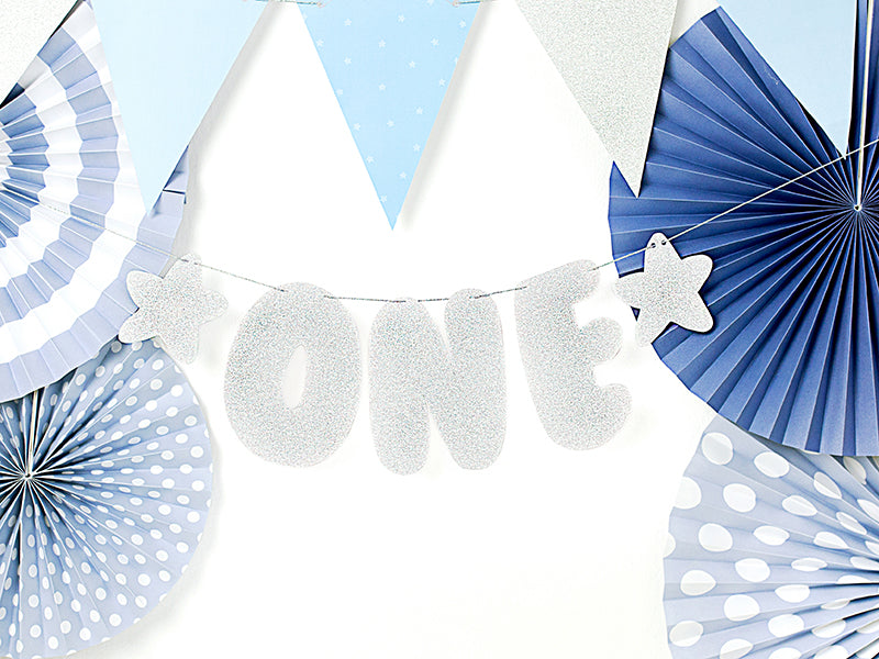 Banner 1. Geburtstag "ONE" silber 50 x 12 cm