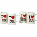 Bierkrug aus Steinzeug weiß, 0,5 l, "I love work...beer"