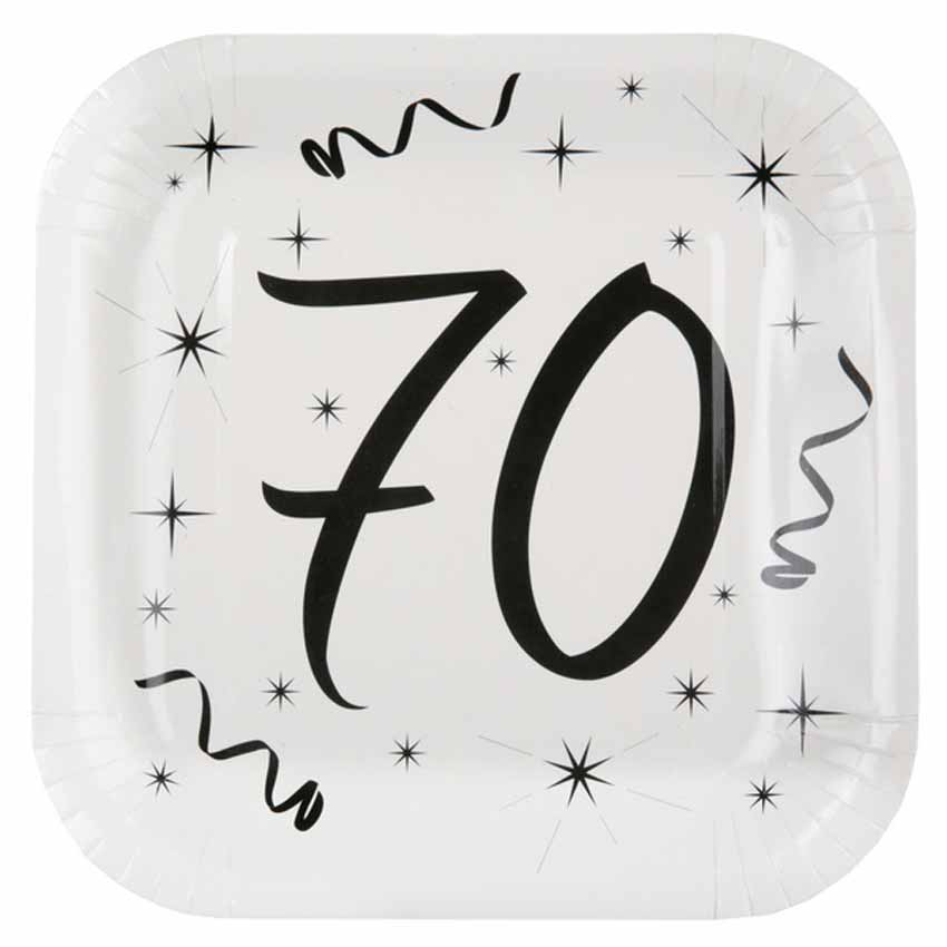 Black & White Teller mit Zahl 70 Geburtstags Deko