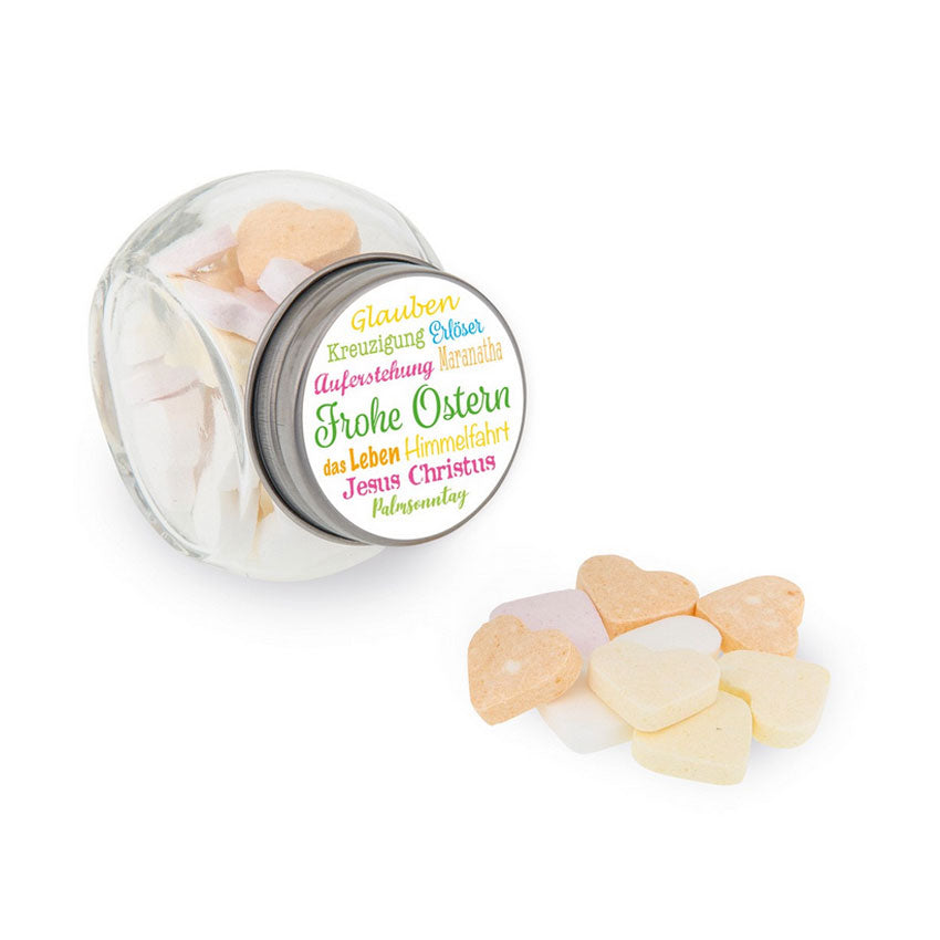 Bonbonglas Frohe Ostern gefüllt mit Herzbonbons Gastgeschenk Ostern