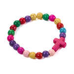 Buntes Kinderarmband mit bunten Perlen und Kreuz aus Magnesit.