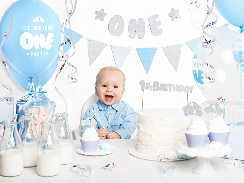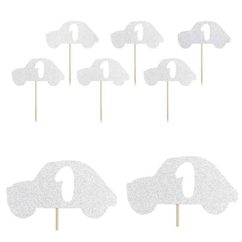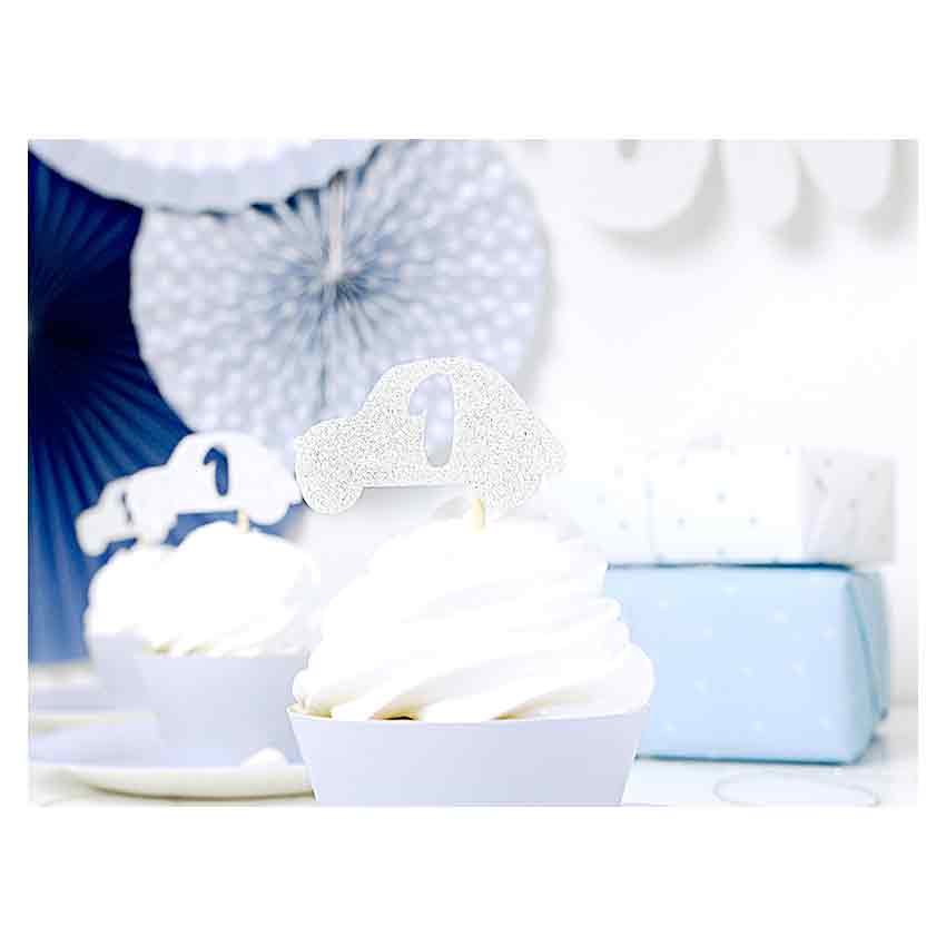 Cupcake Topper 1. Geburtstag "Auto" silber