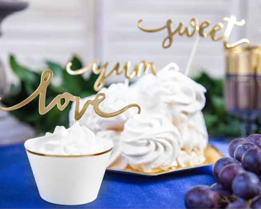 Cupcake und Muffin Papierförmchen hellbeige mit goldrand 6er