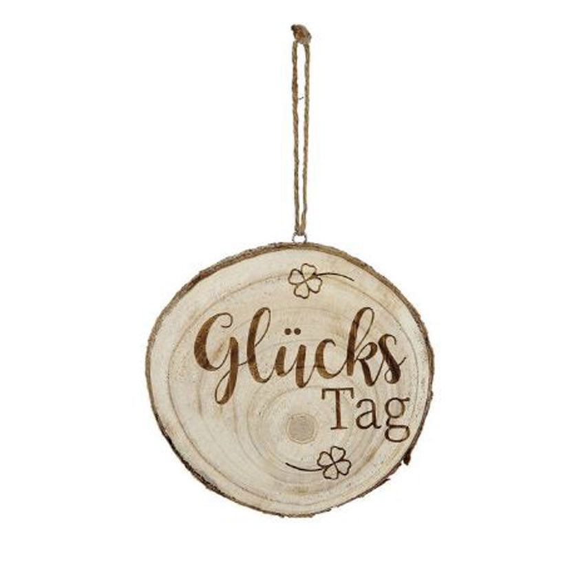 Deko Baumscheibe Schriftzug "Glückstag" zum Aufhängen