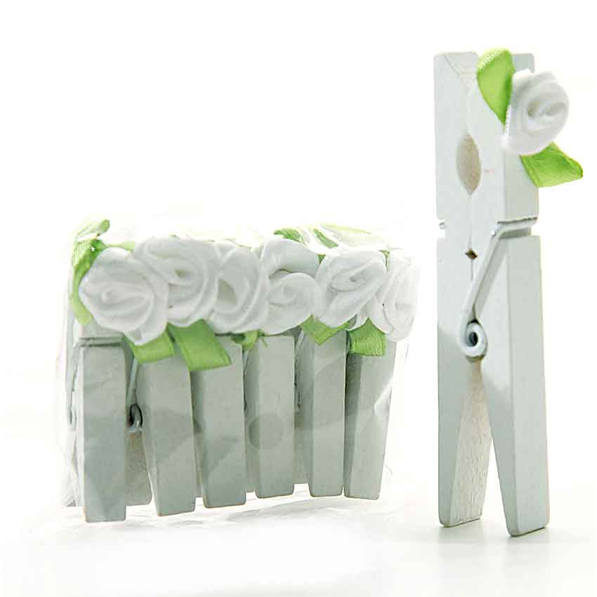 Deko-Klämmerchen weiß mit "Rosen" 6er-Set 4cm