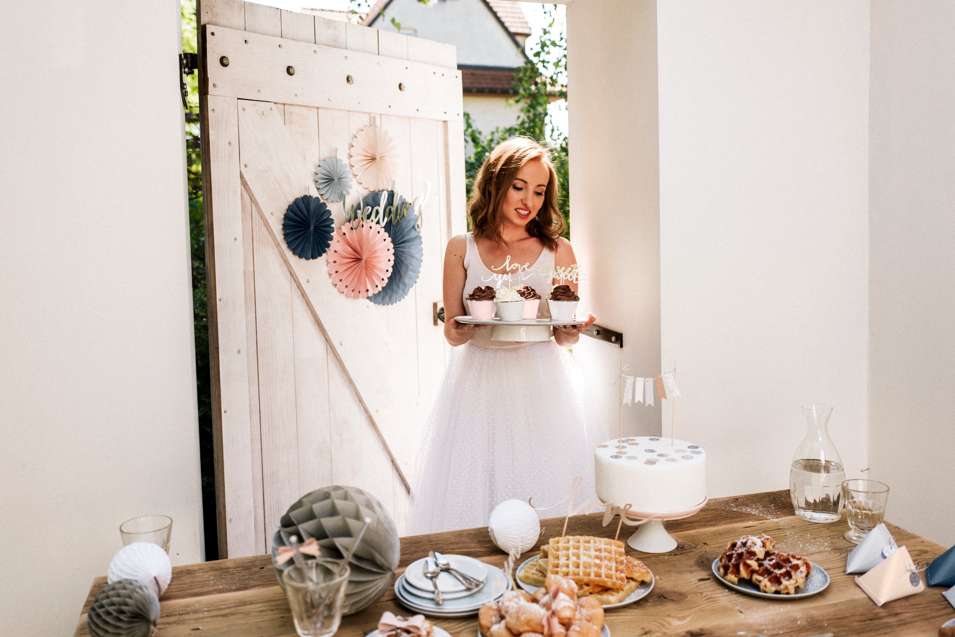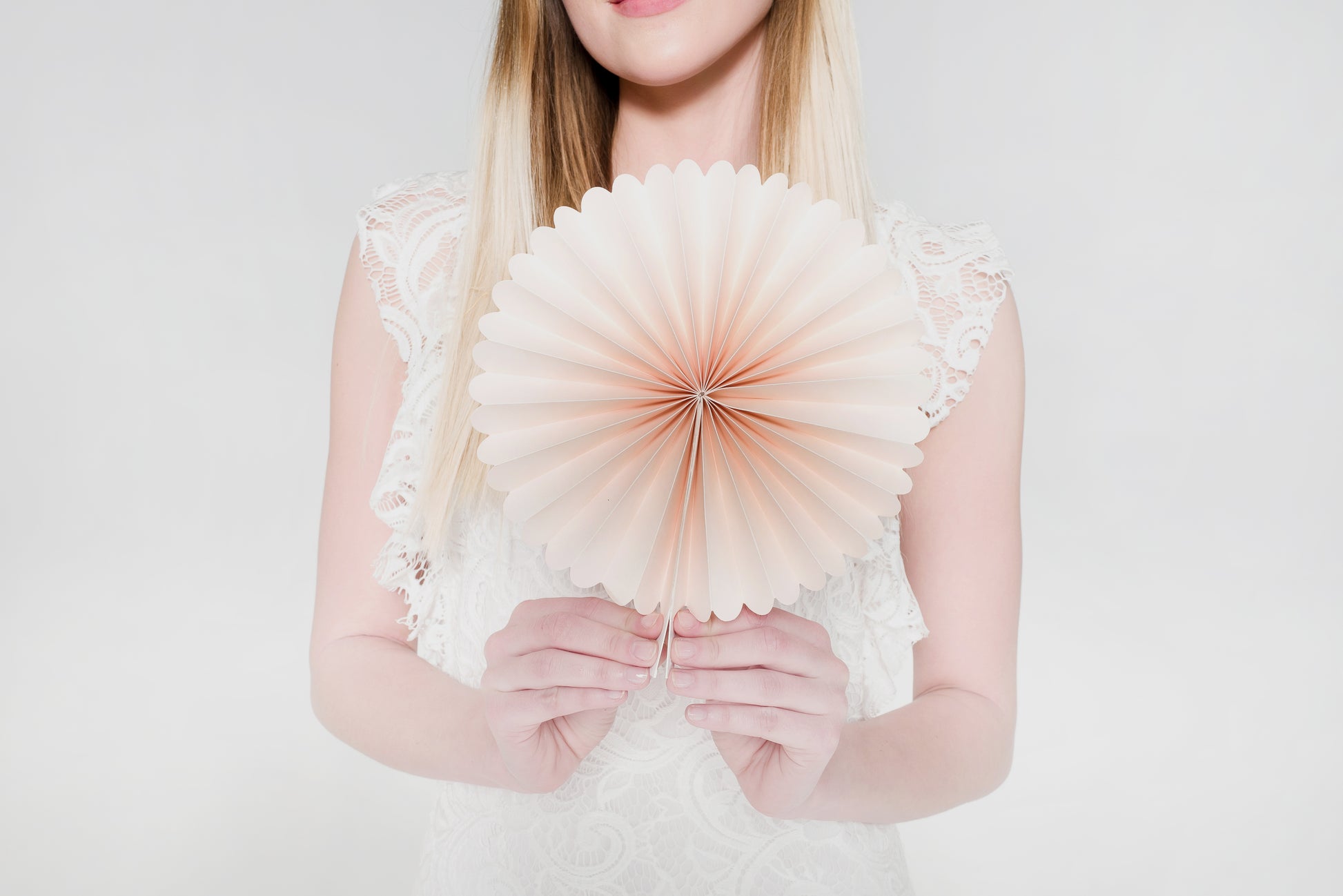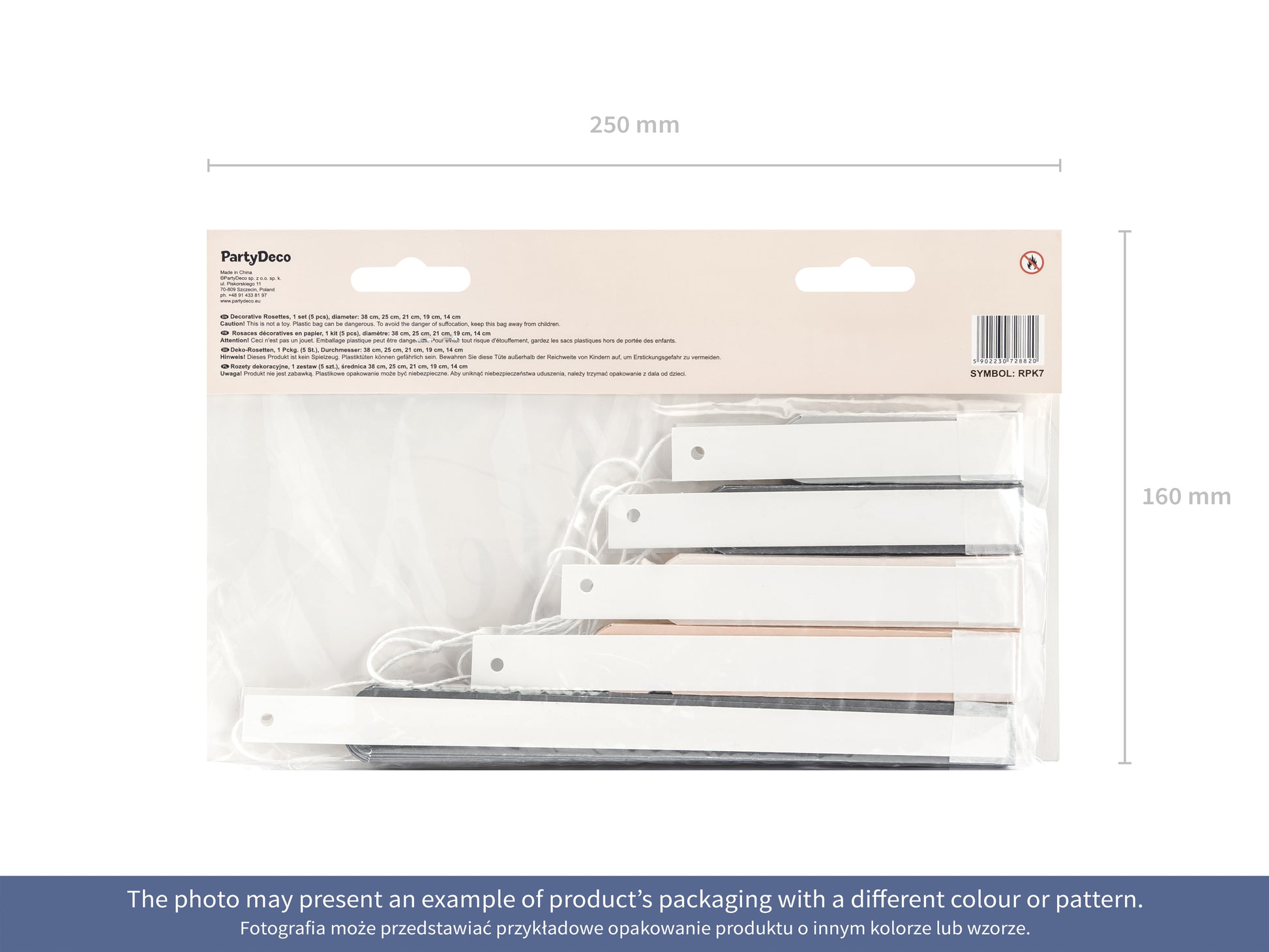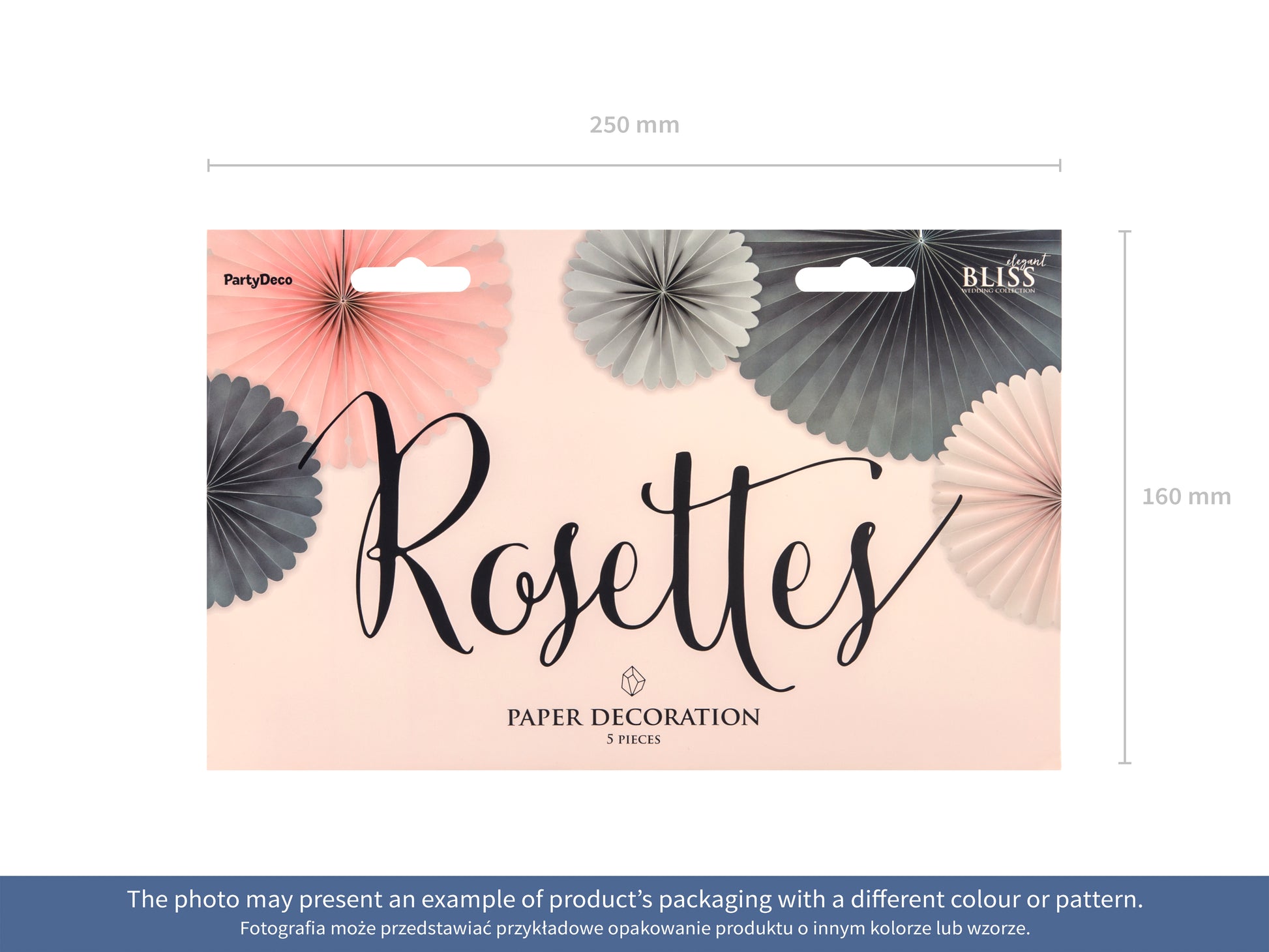 Fünf wunderschöne, hängende Papierrosetten, ganz einfach aufklappbar, dekorieren jeden Raum liebevoll und festlich.