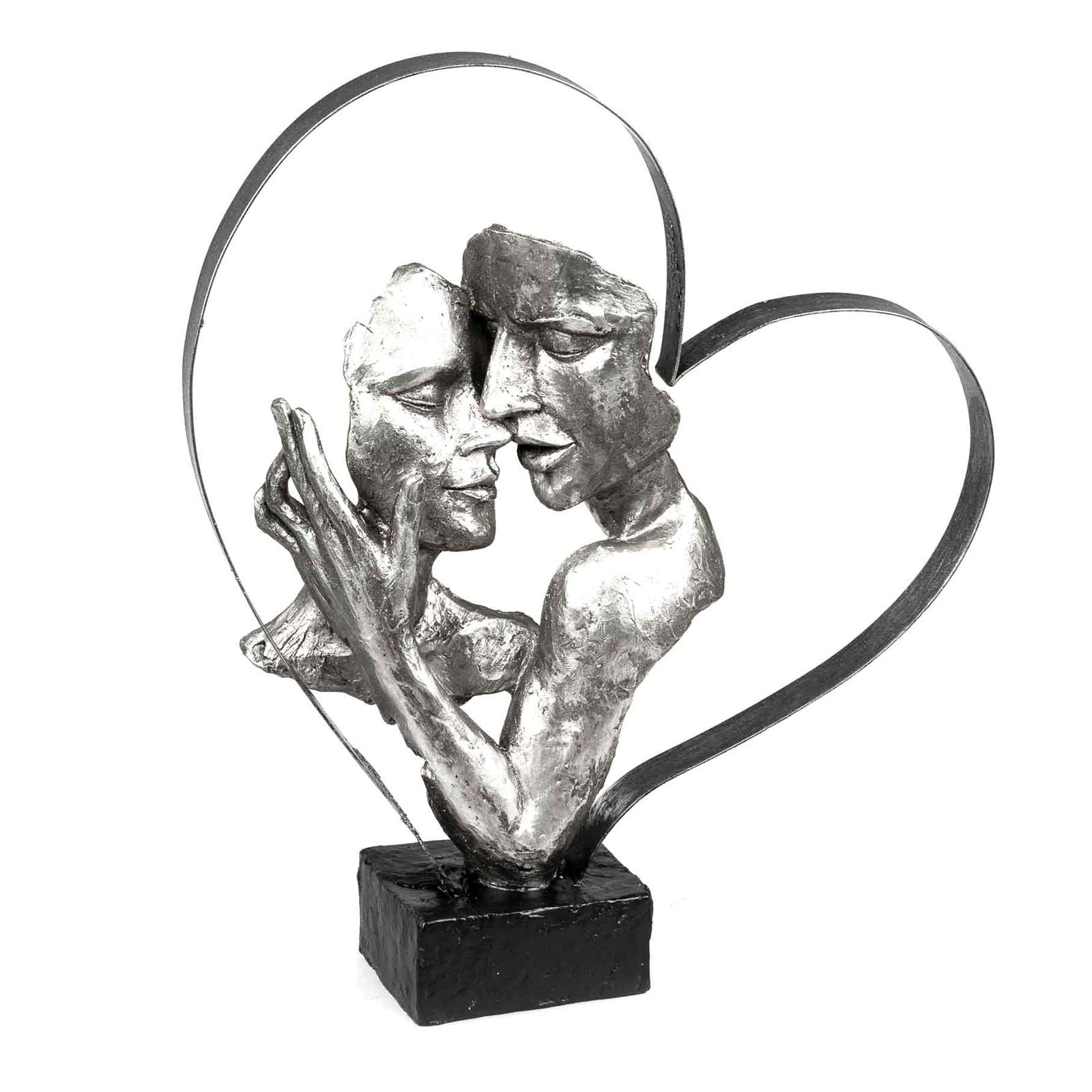 Deko Skulptur Liebespaar in Herz silber 37 cm