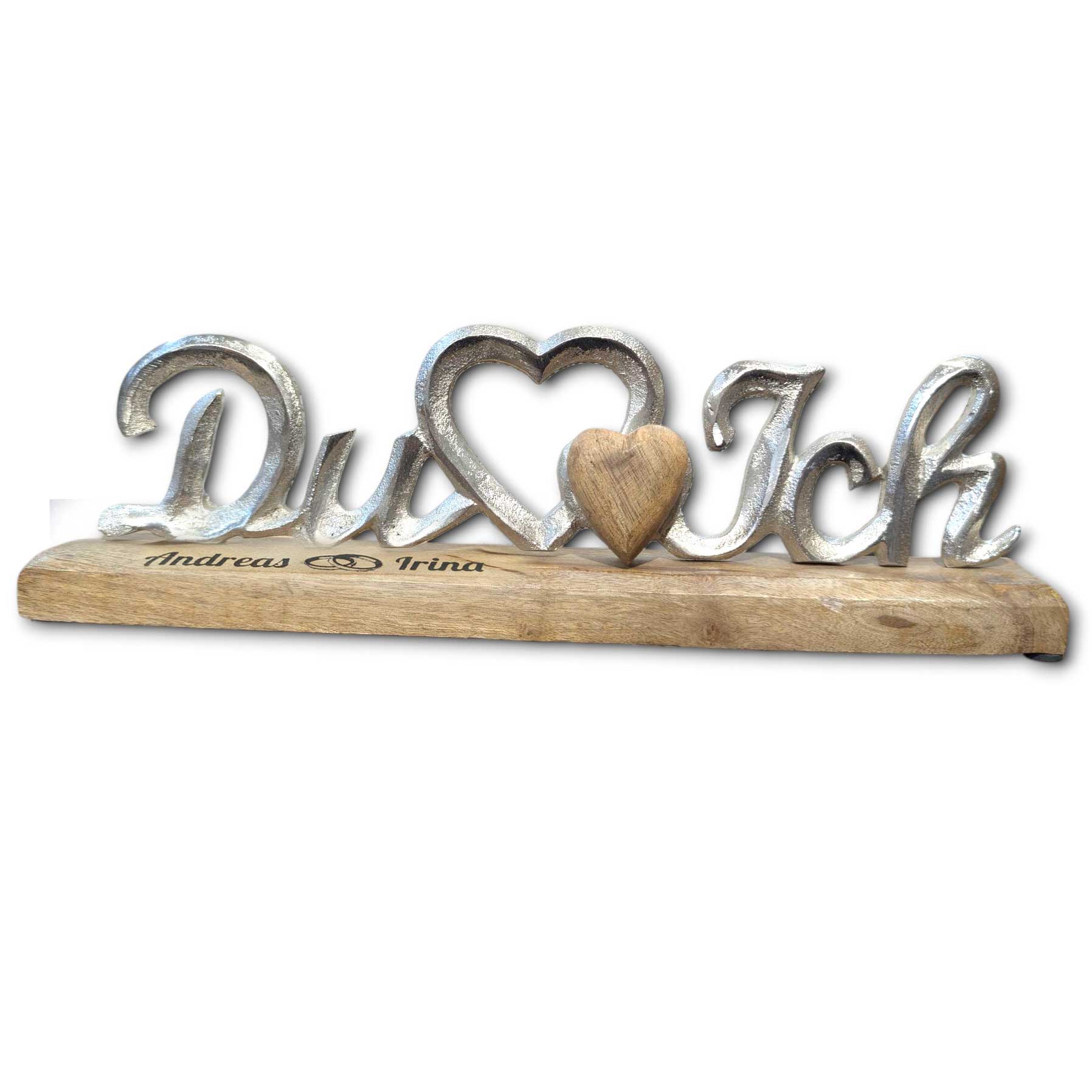 Du und Ich Deko Schriftzug 33cm mit großem Metallherz und kleinem Holzherz