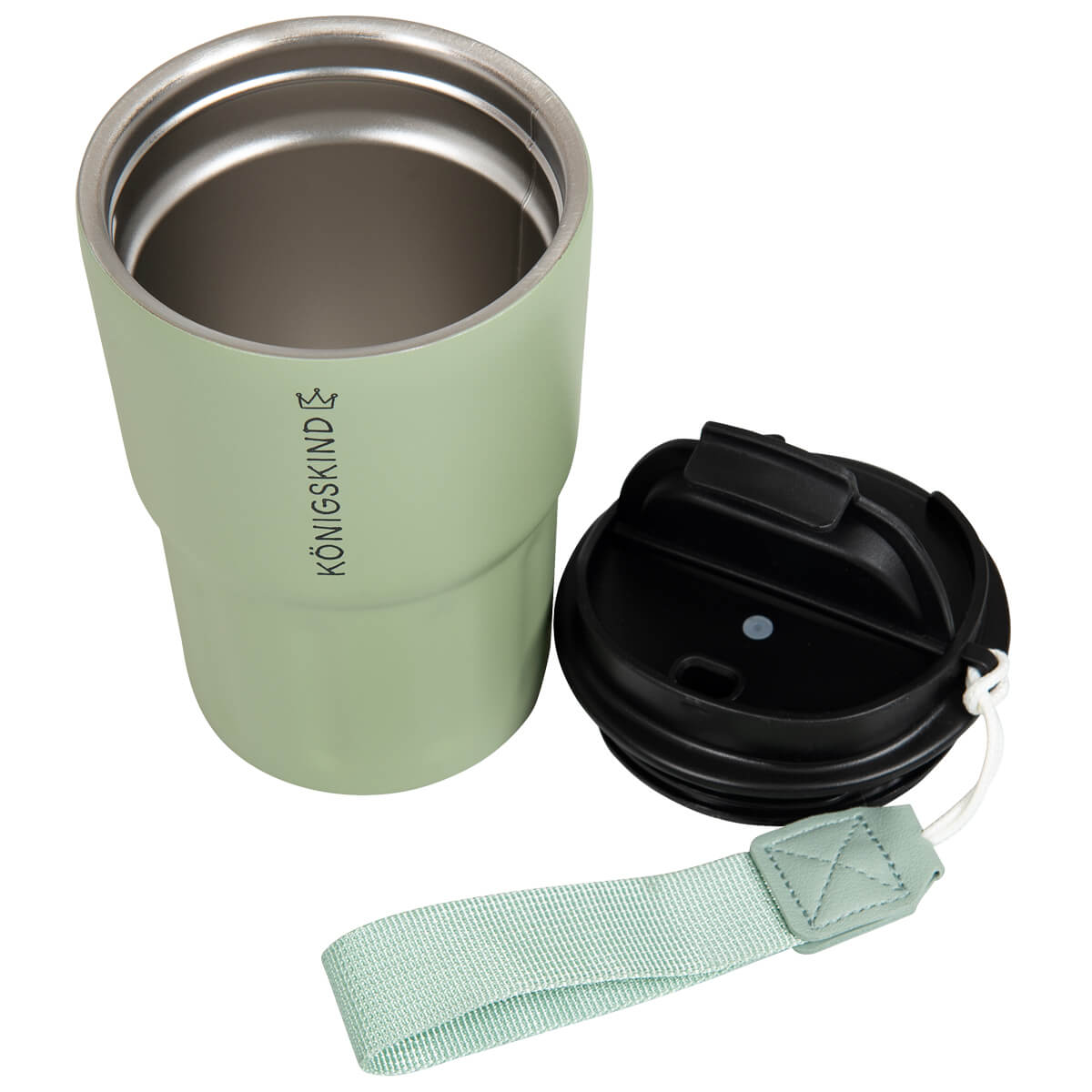 Die abnehmbare Trageschlaufe ermöglicht ein bequemes und sicheres Tragen und passt farblich harmonisch zum Becher. Mit seiner handlichen Größe eignet sich der Thermobecher ideal für Alltag, Büro, Schule oder Ausflüge.