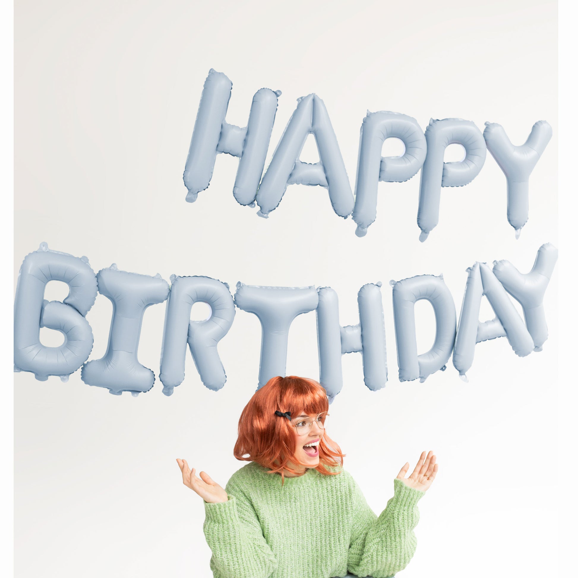Folienballon Buchstaben Happy Birthday matt 340x35cm hellblau
