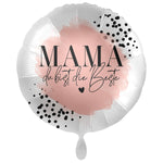 Folienballon weiß/rosé‚ mit schwarzen Punkten "Mama du bist die Beste"