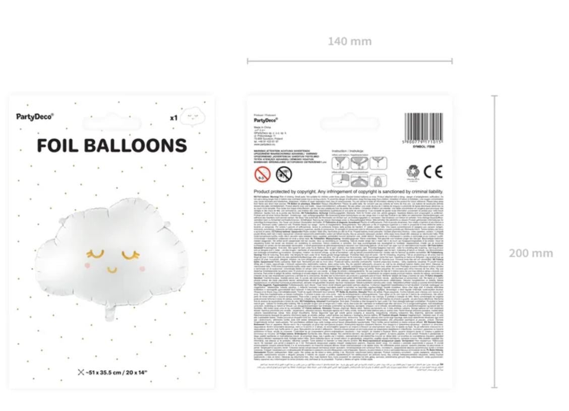 Folienballon Wolke weiß matt mit Gesicht in metallic gold 51x36cm