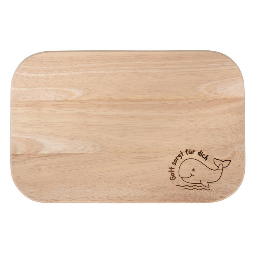 Frühstücksbrettchen Kinder Holz mit Wal und Spruch "Gott sorgt für dich" 22 x 14 cm