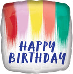 Verschenken Sie farbenfrohe Geburtstagsgrüße mit diesem quadratischen weißen Folienballon, der mit bunten Pinselstrichen und blauem Text "Happy Birthday" bedruckt ist. Passend für kleine und große Künstler bzw. Menschen mit Kreativität.