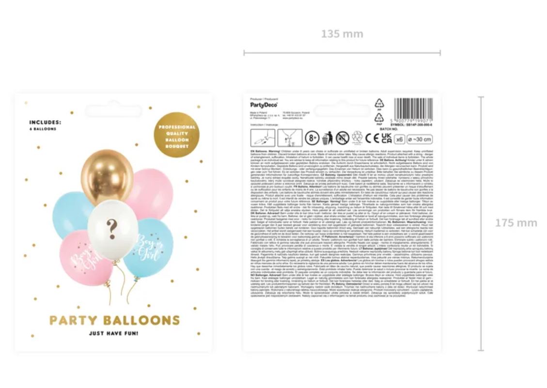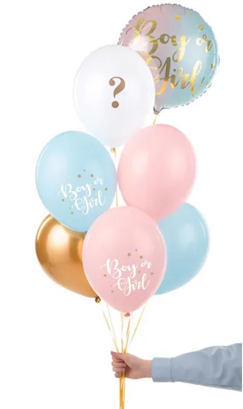Gender Reveal Deko Ballons "Boy or Girl" 6Stk rosa, weiß, blau