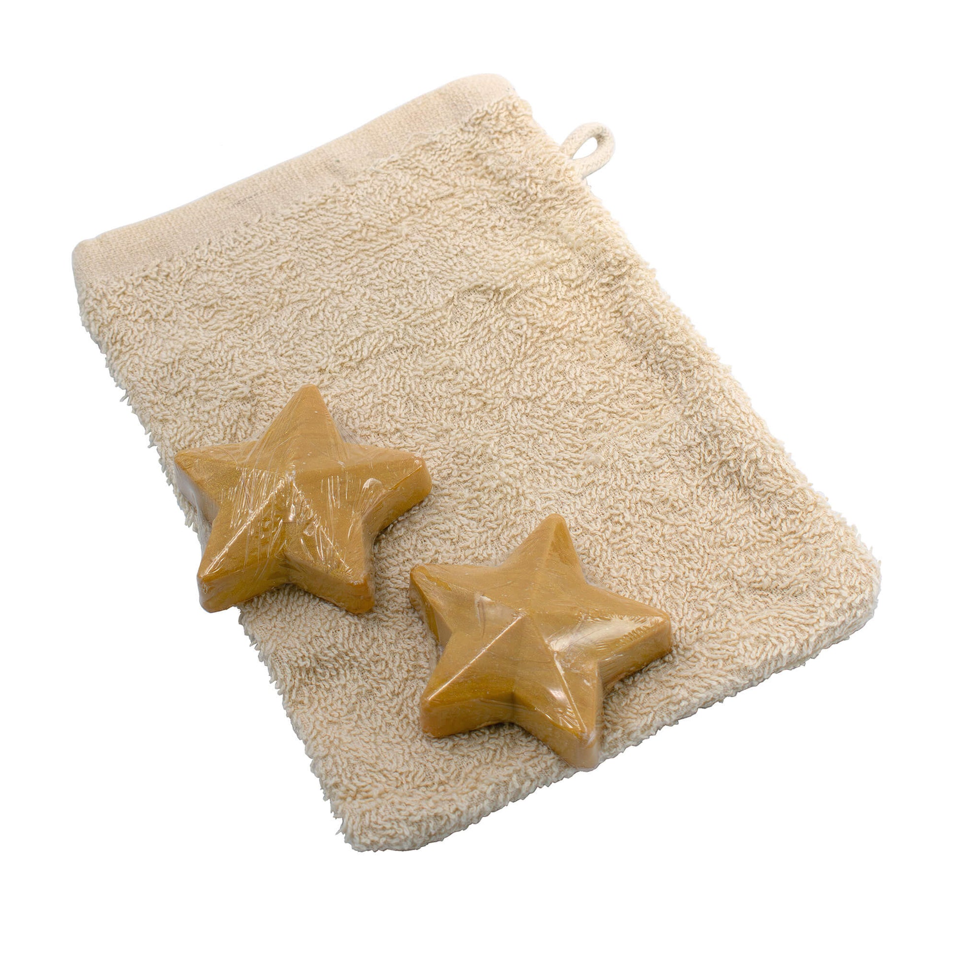 Geschenk-Set Stern | Sternseifen mit beigem Waschlappen