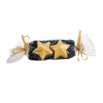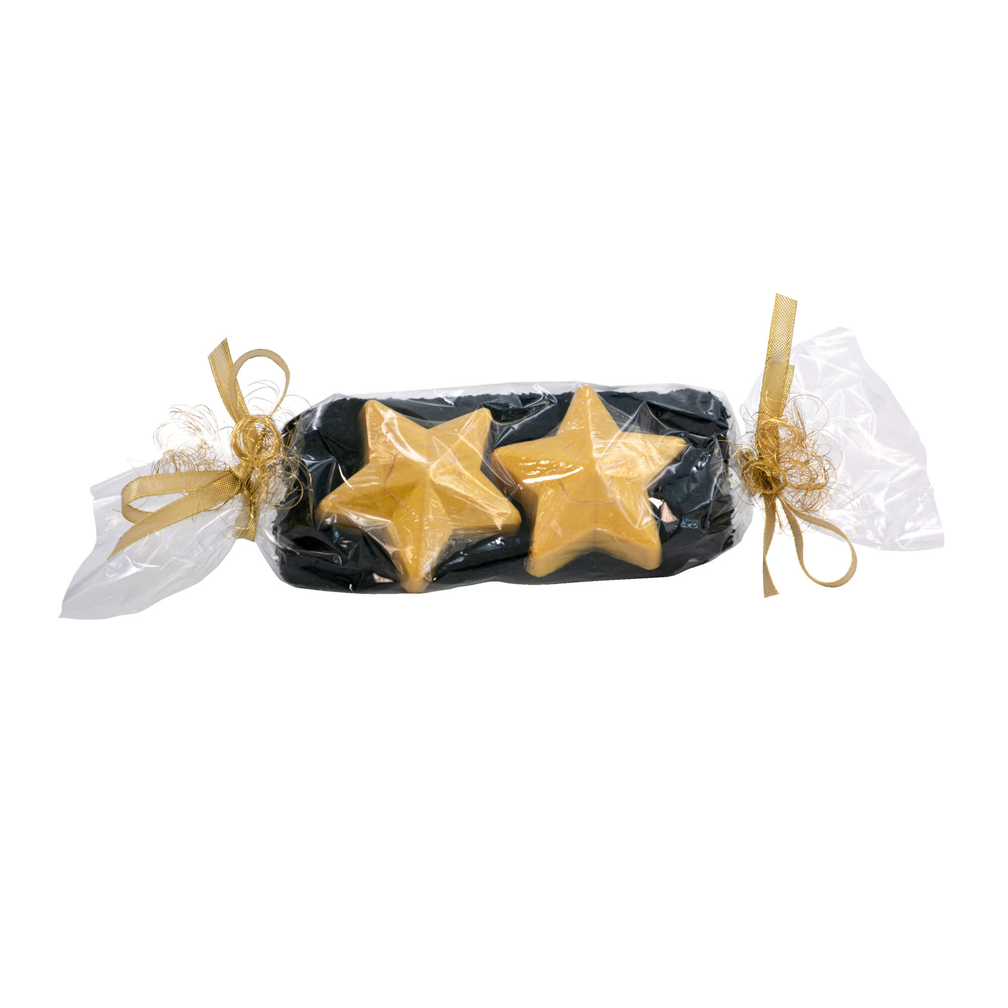 Jedes Set enthält zwei goldfarbene Stern-Seifen mit Vanilleduft, je 35 g, und ist bereits fertig als Geschenk „Bonbon“ verpackt.