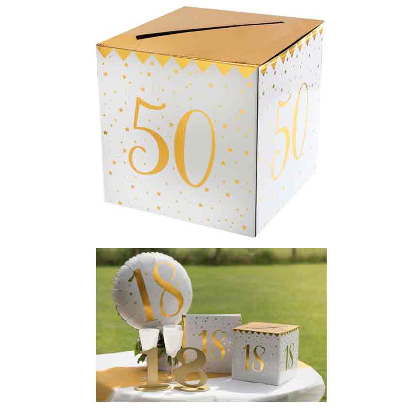 Geschenkbox im Metalliclook aus Karton Zahl 50