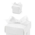 Perfekt für Gastgeschenke zur Hochzeit, zur Taufe oder zum Geburtstag. Diese schlichten, würfelförmigen Verpackungen für kleine Hochzeitspräsente bieten unzählige Möglichkeiten zur eigenen Gestaltung. Passend zur gewählten Hochzeitsdekoration können sie mit farbigen Bändern verziert, beklebt oder bemalt werden. Die leeren Faltschachteln können nach eigenen Wünschen zum Beispiel mit Hochzeitsmandeln befüllt werden. Auch die Weihnachtstafel verschönern diese Schachteln als Minigeschenke.