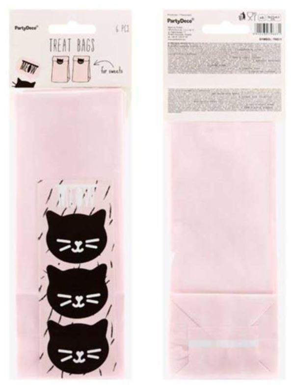 Zuckersüße, rosa Papiertüten mit passendem Aufkleber zum Verschließen in Form eines Katzengesichts. Besonders für Kinder als Mitgebsel oder auch als Geschenkverpackung ein absoluter Hit.