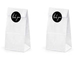 6 Geschenktüten, weiß mit schwarzen Stickern thank you