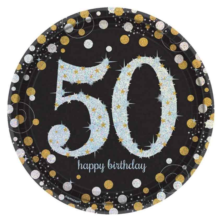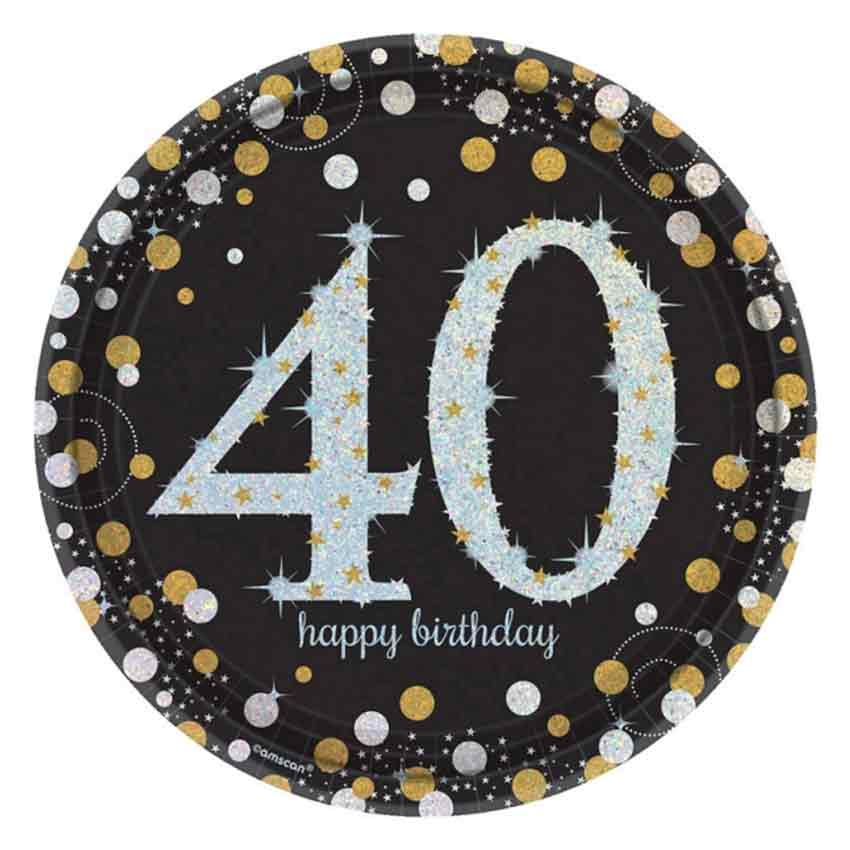 Diese eleganten Partyteller aus der Serie Glamour Gold setzen bei jeder Geburtstagsfeier stilvolle Akzente. Das schwarze Design wird von goldenen und silbernen Punkten umrahmt, während die schimmernden holographischen Effekte für einen funkelnden Blickfang auf dem Tisch sorgen. Ideal für runde Geburtstage und alle Anlässe, bei denen es etwas festlicher sein darf.