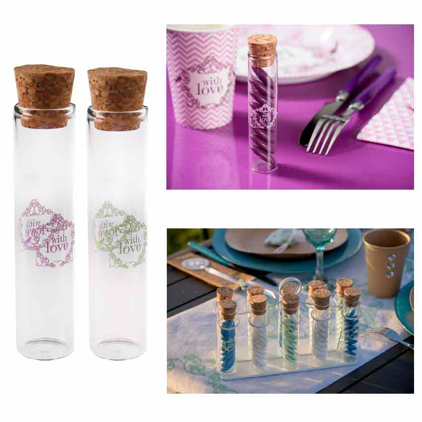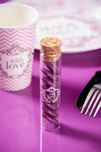 Diese liebevoll gestalteten Glasröhrchen mit der Aufschrift "in love" sind perfekt als Gastgeschenk für Hochzeiten, Taufen oder andere festliche Anlässe. Befüllt mit Hochzeitsmandeln, Pralinen oder Schokodragees und verziert mit einem hübschen Band, werden sie zu einem eleganten Highlight auf jeder Festtafel.
