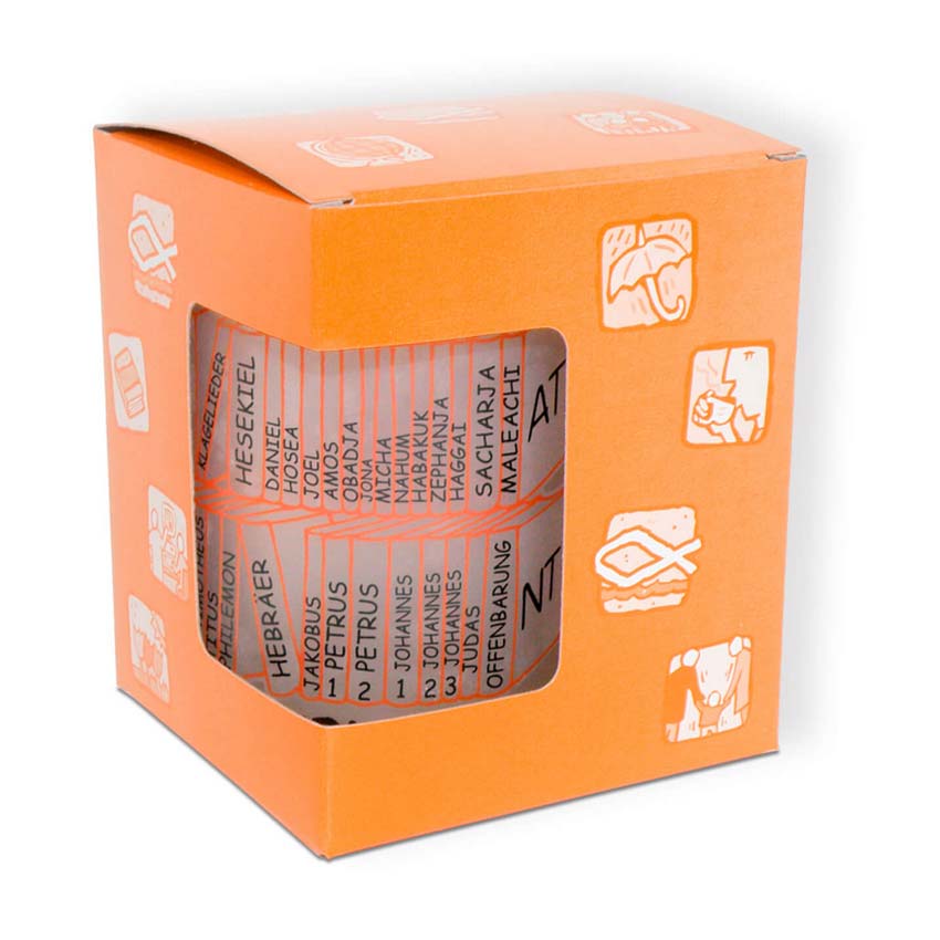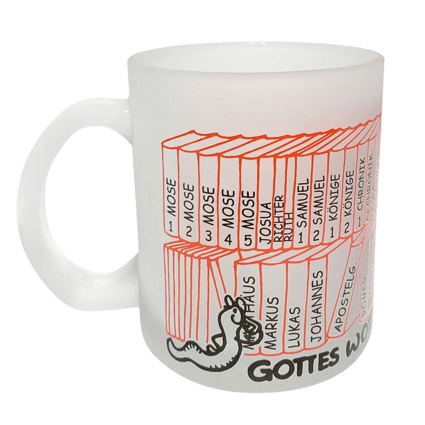 Glastasse gefrostet "Bücher der Bibel" 300ml christliche Geschenke zum Geburtstag