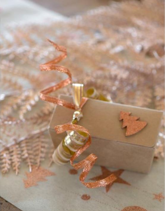 Viele kreative Projekte, nicht nur zu Weihnachten, können mit dem kupferfarbenen Glitzerband umgesetzt und zum Glänzen gebracht werden.