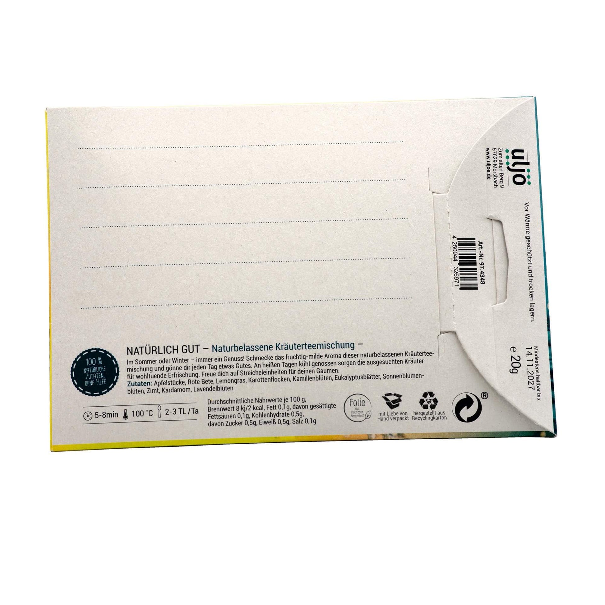 - Inhalt: 20 g naturbelassene Kräuterteemischung.
