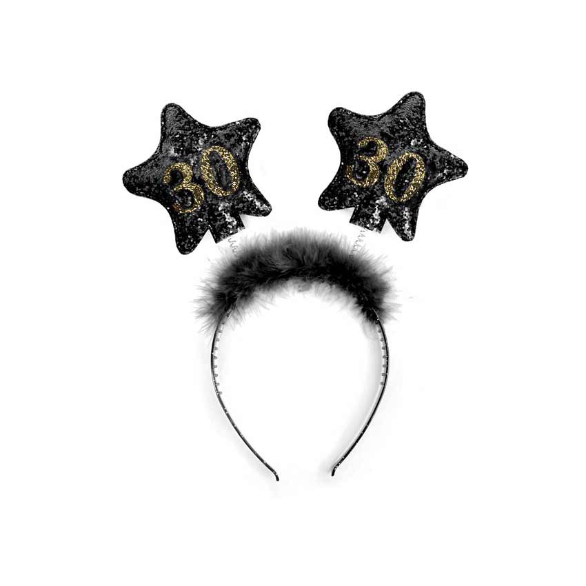 Haarreif mit Federn und Sternen schwarz Zahl 30