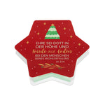 Den roten Umschlag ziert ein kleines Weihnachtsbäumchen und der Bibelspruch: "Ehre sei Gott in der Höhe..." (Lk 2,14)