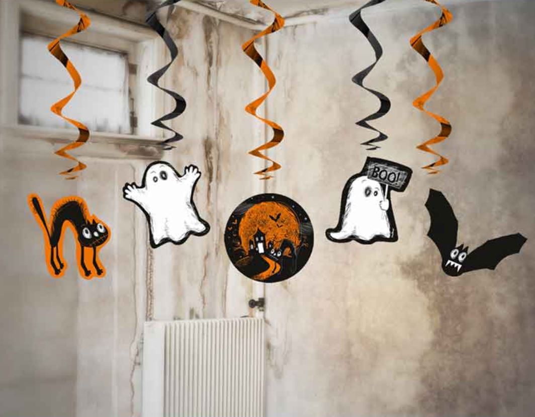 Halloween - Gespenstergirlande Grusel-Swirls 5er-Set 60cm