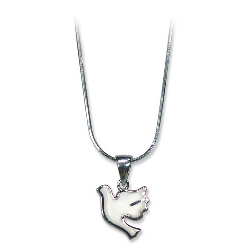 Hübsche Halskette mit emailliertem Anhänger im Taubenmotiv (1,5 cm).
