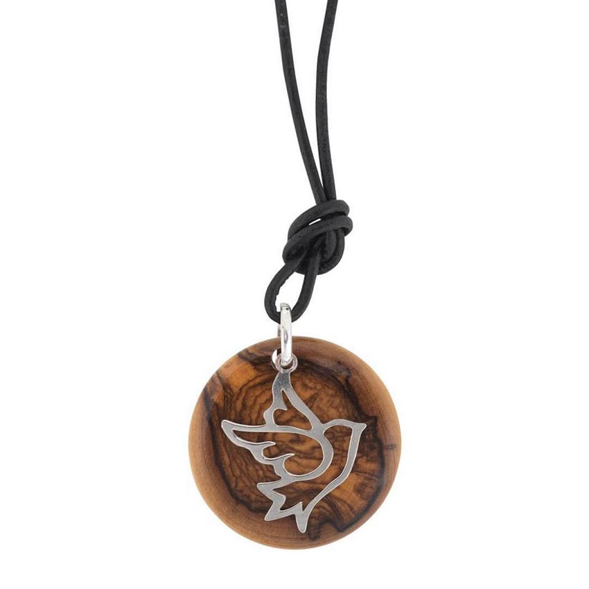 Verpackt ist die Halskette silberne Taube auf Olivenholz in einem kleinen Organzasäckchen und eignet sich so hervorragend als Geschenk.