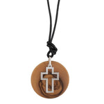Diese Halskette besticht durch ihren wunderbar aufeinander abgestimmten Materialmix: das natürlich gemaserte Olivenholz, der glänzende Silberanhänger und das rustikale Lederband.