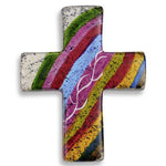 Handschmeichler Kreuz in Regenbogenfarben, aus Speckstein, 4,5x5,5 cm, in Kenia handgefertigt und fair gehandelt, jedes Stück ist ein Unikat