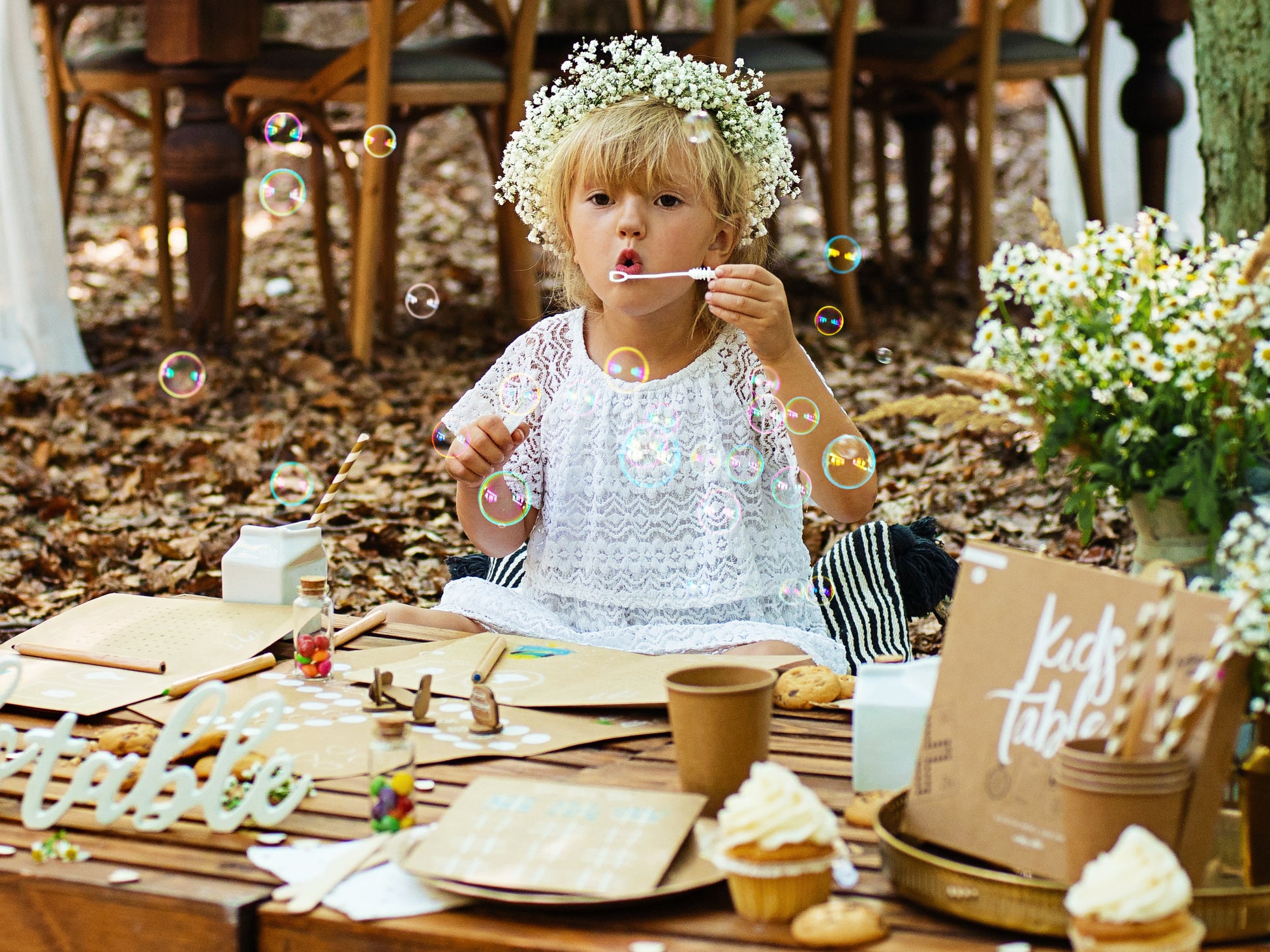 Nicht zuletzt sind Seifenblasen eine wunderbare Beschäftigung für Kinder auf Hochzeiten.